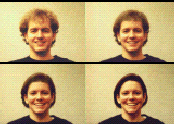 Mpegs of morphs are available online. Some of these morphs were done during a one day workshop for high school students sponsored by our group. Can you recognize the halfway mix of Barney and Elvis done by one of the students in the top right image?
